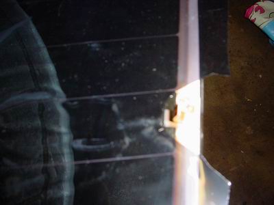 Als het ergste water weg is, snij de folie dan zo af dat deze 3 mm binnen het glas valt. Hier komt later het rubber overheen dus dit zal je niet zien.