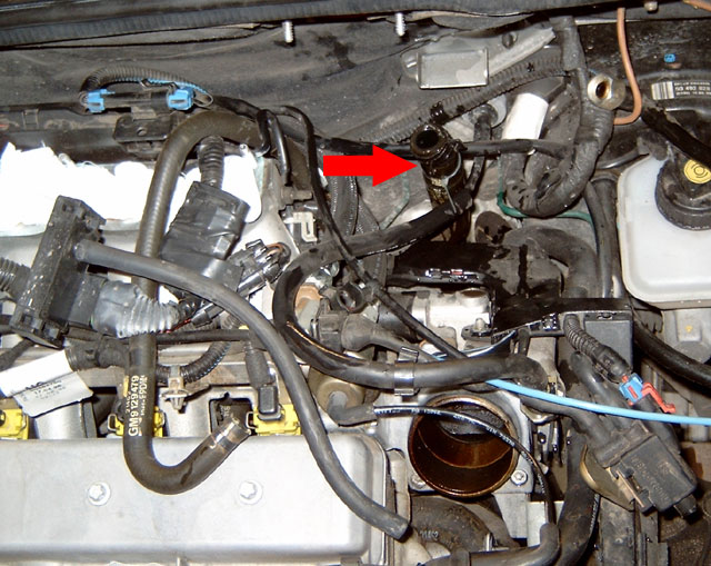 Nu gaan we beginnen de luchtslang van achter het blok te verwijderen, Deze moet je helemaal aan stukken zagen en snijden en knippen om hem daar weg te krijgen, het is er namelijk nogal krap en dr zit nog een doodlopend stukkie aan de slang. Hij zit natuurlijk aan de gasklep vast. En op nog een punt !!! Hierzo zie je het ding wat aan je inlaatspruitstuk vast zit, deze zit aan de achterkant vast, MAAR !!! Hier zit de slang ook nog 1 punt bij vast, dus kijk goed en draai deze ook los.
