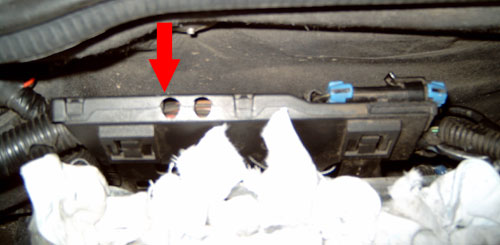 Boor dan deze 3 gaatjes op met een boor van 7 mm: (Rode pijlen)